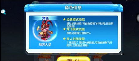 首先从技能上来说,暗黑大圣也算是开创了一种全新的技能模式了。而且还是进入黄金奖池的~本来黄金奖池人物的实力就非常强悍的,更何况是他这种技能开创者呢?可以控制冲刺飞行的技能不管是在自由模式还是在多人对战中,都具有非常好的战略意义,自由模式中可以冲刺,看到冲刺道具的时候停止,等到冲刺道具效果完了,能量值又充满了,而多人对战中一个道理,fever槽快满了,就停止冲刺,坐等超级冲锋,超级冲锋完,又可以冲刺了~技能非常逆天哦。如果有能力的话,小编建议各位小伙伴都要入手这款新人物哦。