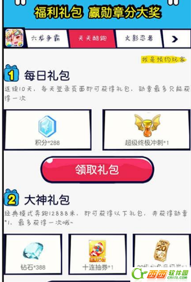 1.每日礼包:连续十天,每天登陆页面即可领取礼包,勋章最多只能获得一次!