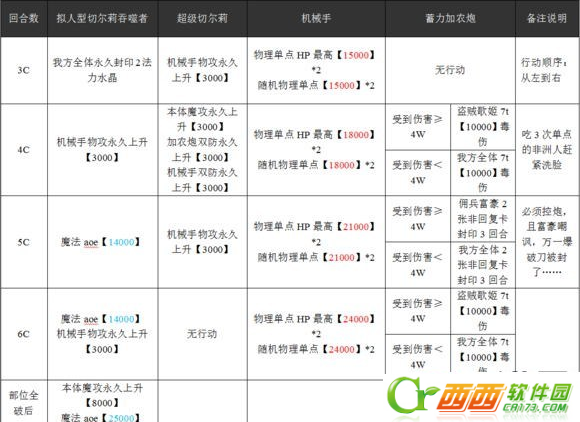 伤害主要来自每回合机械手的4下物理单点,5C开始的魔法A0E完全没有灭团威胁