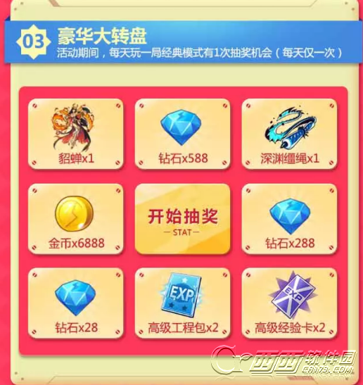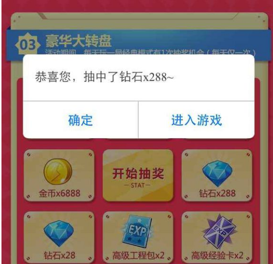 豪华大转盘每天玩一局经典模式就可以抽奖。每天只可以抽奖一次。