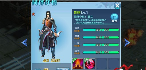 剑侠情缘SS同伴荆轲技能属性全面一览