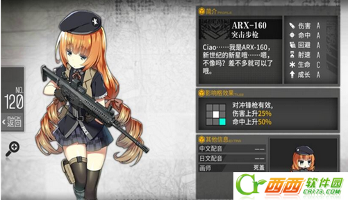 ARX160有着非常不错的属性数值,伤害A、命中A、射速A,唯一一个C的是不太重要的生命值,可以说作为一个3星AR没有什么明显的缺点很难得了。