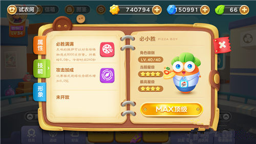 必小胜是阿波遇到的最省事的角色啦,从一出生就是四星角色,不需经过任何进阶。不过,四星的必小胜在到达满级时还是有40个阶梯需要爬的呦。而想要成功爬上阶梯的顶端,那各位萝卜丝可要好好玩抢夺宝箱和比赛模式啦,毕竟每上一层阶梯就需要更多的金币。虽然必小胜不需要进阶,但它的实力可一点都不容小觑呦。哎,阿波怎么发现必小胜有点像阿波的男神张继科呢,一睡一醒,实力马上就不一样了。初始阶段的必小胜冒险炮塔攻击为13.0%,比赛炮塔攻击为22.0%,比赛分数加成为12.9%,看起来还是有点弱的。不过在升至满级后,各项数据都有了大幅度的提升,冒险炮塔攻击提升为50.3%,比赛炮塔攻击提升为150.0%,比赛分数加成提升为40.3%,就攻击方面可以说是相当的不错,几乎可以媲美潜水员了,是不是感觉到必小胜的厉害了呀!