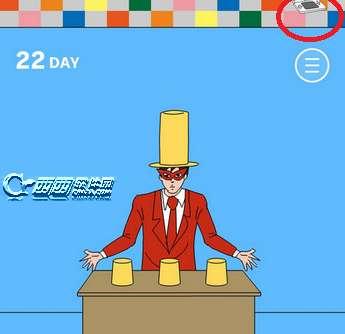 这次是个圈套啊!!!不是点帽子!!!不是点帽子!!!!不是点帽子!!!!这一关,同样是障眼法!但是,游戏机不再帽子里面!而在你看得见的地方!右上角!