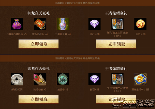 4.奖励是直接发到两个游戏的邮箱,所以请到邮箱请查收,如果没达到御龙在天的要求,就没办法领取王者荣耀的礼包。
