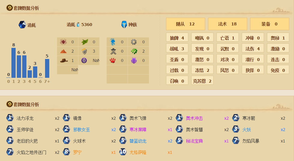 反观奥术畸体,先手只是21容易被解,成长之后依然两攻输出极低,化身奥术智障,这就显得非常尴尬了。所以会长最后还是下了他,调整之后卡组如下: