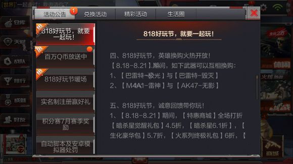 本次换购活动是上线以来第一次进行的大型特惠活动,玩家可以把手中的AK47无影和M4A1雷神。