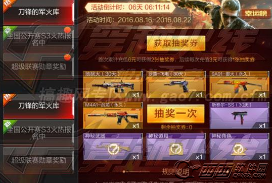cf手游刀锋的军火库抽奖券怎么获得?刀锋的军火库抽奖技巧攻略,cf手游迎来了军火库抽奖限时活动,通过军火库抽奖券抽奖可以获得永久或者限时武器,还有神秘角色和神秘礼包等等,那么cf手游刀锋的军火库抽奖券怎么获得?下面给大家带来刀锋的军火库抽奖技巧攻略。