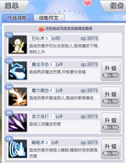法师:挑衅-魔法双击-催眠术-念力快打-治疗术
