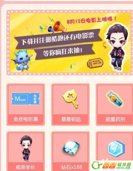 活动内容:下载并注册酷跑还有电影票等你疯狂来抽!