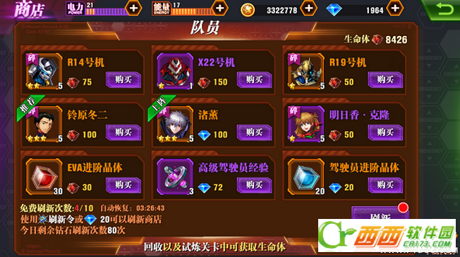 队员商店中可以刷新出驾驶员和EVA碎片,平民玩家可以用生命体来购买自己想要的碎片。如果玩家有多余的钻石,可以在队员商店购买一些自己想刷的橙色碎片,此时钻石推荐花在3星及3星以上碎片上,不然还是不要浪费钻石。