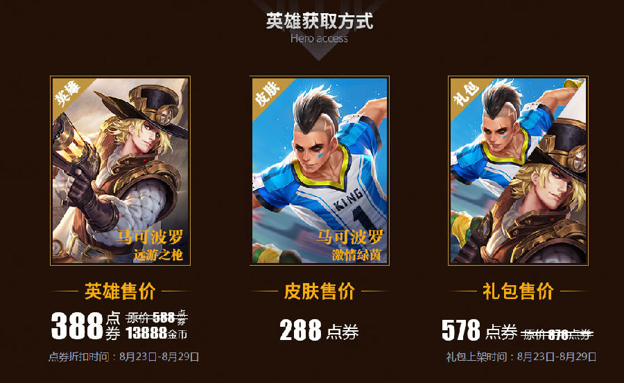 王者荣耀8月23日马可波罗上线多少钱?多少点券?