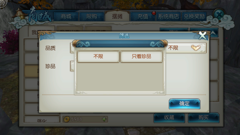 如图珍品和非珍品价格差距大,而且筛选条件也不一样。但是西西发现其实这两种的基础属性是一样的,也就是说一个装备除了分上品、散仙、真仙属性外,还分珍品和非珍品,而且每个属性都有珍品和非珍品。