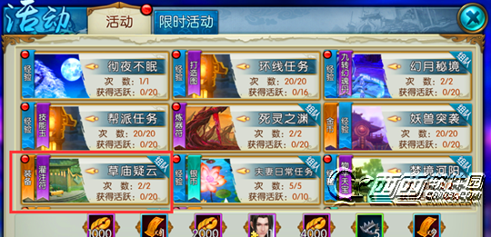 草庙疑云、死灵之渊、幻月秘境、梦境河阳、镇魔古洞这五个本是每日10点好感度奖励上限,妖兽突袭、兽神之叹和野外刷怪每日好感度上限是20点,帮派任务炼血堂入侵击杀能得到26点好感度,每周二的炼血堂逆袭限时活动完成能奖励140点好感度,再加上支线任务寓情于花的30点。