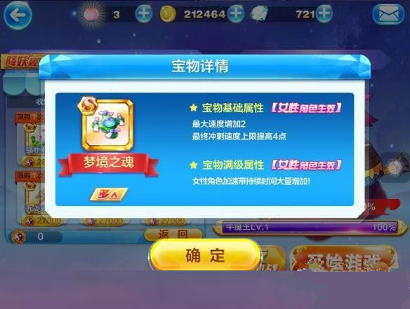 小编并不推荐大家入手梦境之魂这款宝物哦。在现在的多人对战中,占据主流地位的人物是暗黑大圣、唐小僧以及暴走罗杰,第四应该就是吸血伯爵了。至于女性角色,唯一比较厉害点的伯爵夫人都要排在第五名开外。可见是 一点都不占优势的。而且按照目前的样子来看,新更新强悍的女性角色的可能性也很下。所以这款宝物其实没啥用武之地哦。