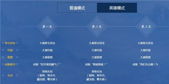 有两条路可以通往胖大海的所在地雪山。一条是羊肠大道,路虽然拥挤,但是伙伴们可以一起消灭沿途的怪物。 还有一条是羊肠小道(英雄救美)。一个帮会只能开启5个羊肠小道,羊肠小道必须通关才能救出帮花,否则玩法将无法继续。羊肠小道有英雄模式倒计时,13分钟内完成小道即算完成英雄模式。