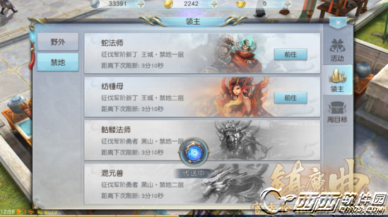 魔王们会在13点和20点出现在禁地中,击败魔王们并抢夺他们掉落的宝箱,可获得丰厚的奖励。