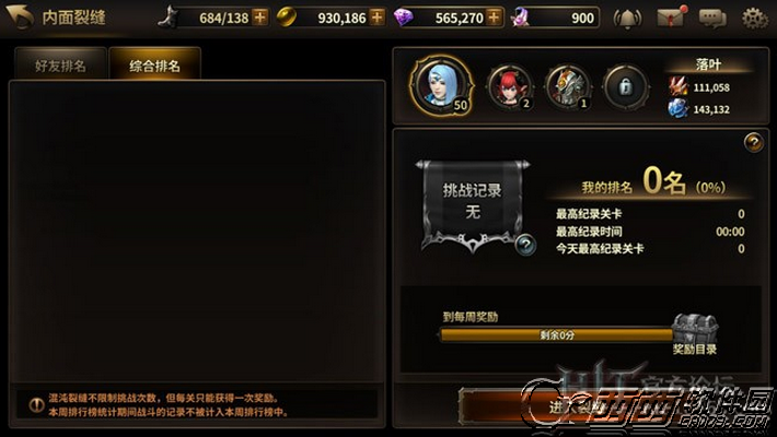 内面裂缝还有个闯关排行榜,根据赛季内的最高纪录关卡和闯关耗时进行排名,除了闯关奖励外每周还会根据排行榜排名获得一波奖励,奖励需在下一赛季期间领取。