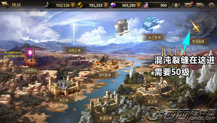 混沌裂缝玩法同试炼之塔比较类似,不过需要角色等级达到50级才能开启,所以难度较高及对装备也有一定的要求。混沌裂缝玩法要求玩家进行连续的闯关,玩家需要清除各种小怪并击败各种BOSS虚影或幻想才能进入下一关,每通关一个新关卡就能获得一次通关奖励,但是每个关卡只能获得一次。