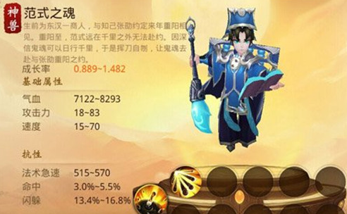神兽的培养价值都比普通召唤兽、高级召唤兽高得多,但是获得神兽+培养神兽的成本都太高了,没有几千块是下不来的,范式之魂作为神兽也是一样的,不过这个宝宝不是攻宝宝,培养成血宝宝帮玩家防御会比较好,毕竟闪躲率很高。