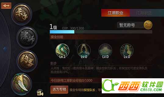 镖师专精:选择镖师做专精的话在押镖的时候担任队长,等级越高获得的额外收益越高。