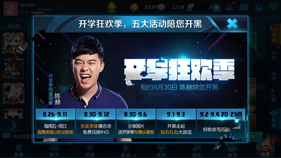 开学季明星玩家:陈赫,赫赫,陈赤赤陪你开黑。