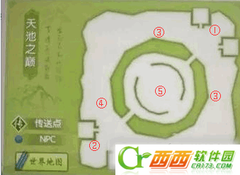 帮战攻略为一个大致对称的四边形地图,其中①、②点为我方、敌方复活点(即地图上的四个小方块)③、④点为四圣兽旗,⑤点为炎黄战旗。