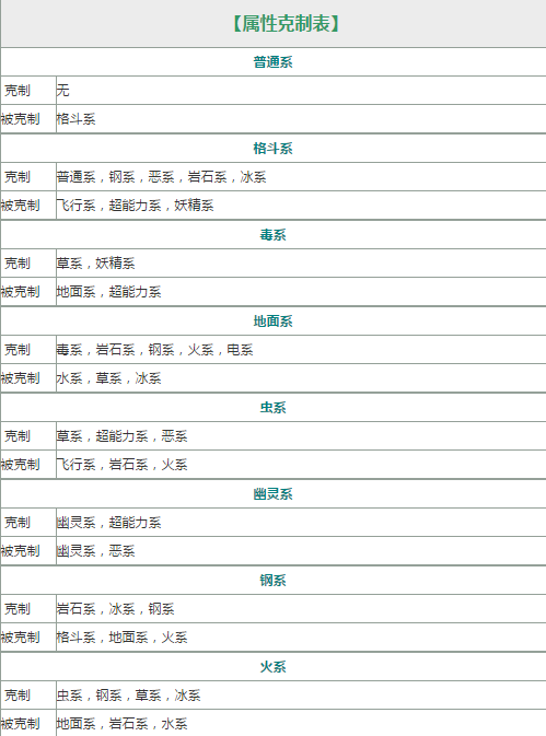以上就是口袋妖怪重制全属性克制表格详解,希望能够帮助到你!