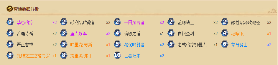根据大家的评论,铠甲法、宇宙恩佐斯术士、带生命之树的克苏恩德都可以击败最后这一关,大家如果鱼人骑尝试失败的话,可以尝试上述卡组。