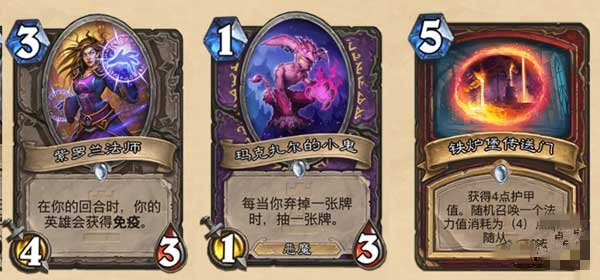 玛克扎尔的小鬼(术),铁炉堡传送门(战),紫罗兰法师(中立)