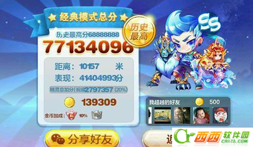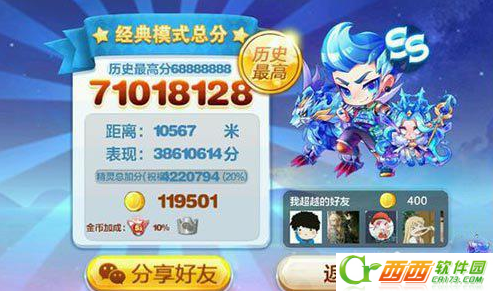 推荐理由:冰魄狼王也是搭配飞行冲刺类角色的好手,超高的飞行得分加成让这个组合的分数大大提升,在冲刺过程中利用雪女的雪花高分,和绿巨熊冲刺破坏障碍物加分,这个组合也可以轻松达到1:4000的比分。
