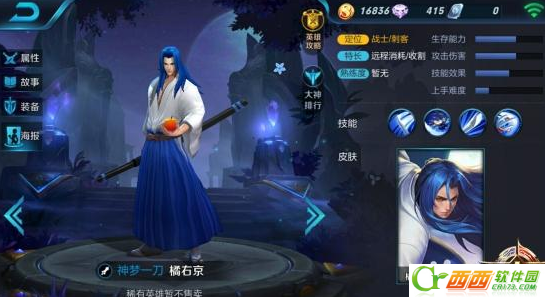 在团战方面有一个小技巧:由于橘右京技能的距离较长,3v3的地图又比较窄,遇到残血的敌人时橘右京可以利用二技能的长距离进行骚扰或者出其不意的斩杀。而橘右京大招的回血配合上泣血之刃,让他残血也可以进行反杀,但面对控制多的敌人时还是不要太浪哦!