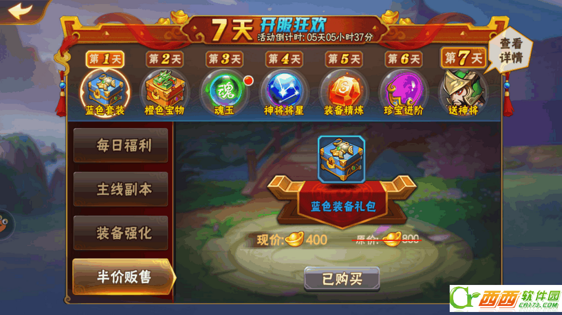 7天开 服狂欢里的半价商品基本都是平日无法买到且 急切需要的,所以尽量留元宝购买吧。