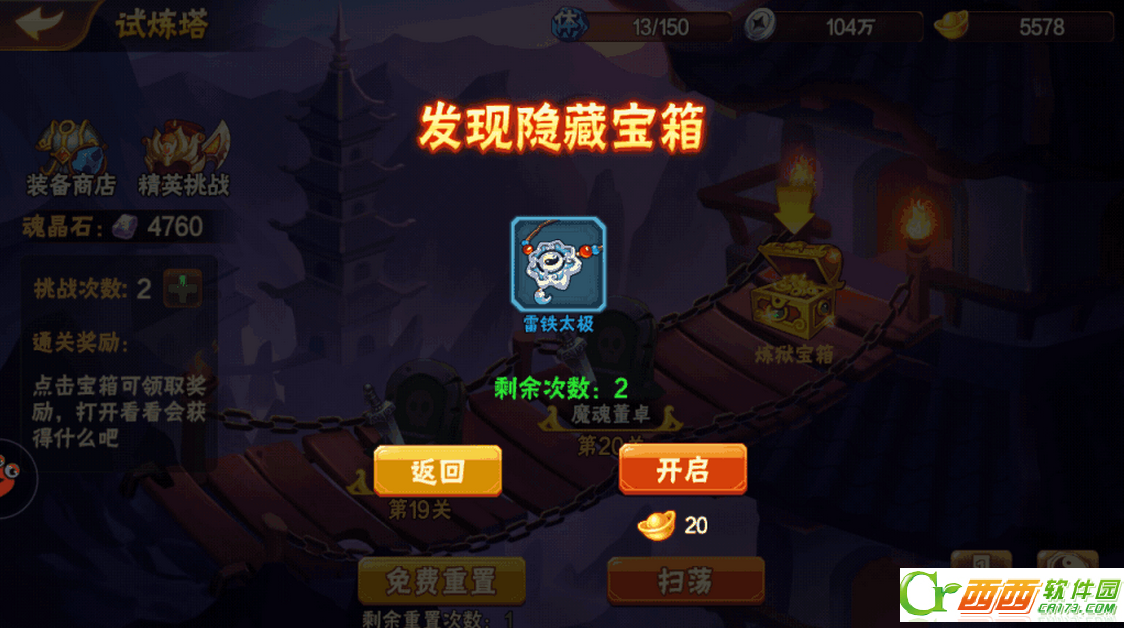 试炼塔的宝箱能有机会开出整件装备,所以建议新手前期拼拼运气用点元宝开。