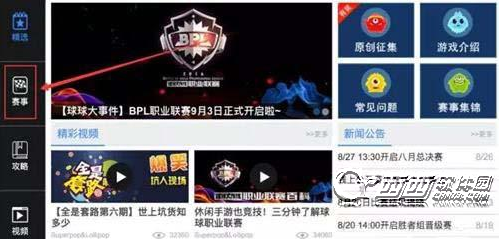 3、点击攻略—进入左侧”赛事“菜单,可观看直播