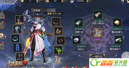 每件装备均可开光5个部件,不同等级的开光材料对装备的开光属性附加不同,可以全面提升玩家的攻击、防御、气血上限、暴击伤害和暴伤减免属性,同时提升较多功力。