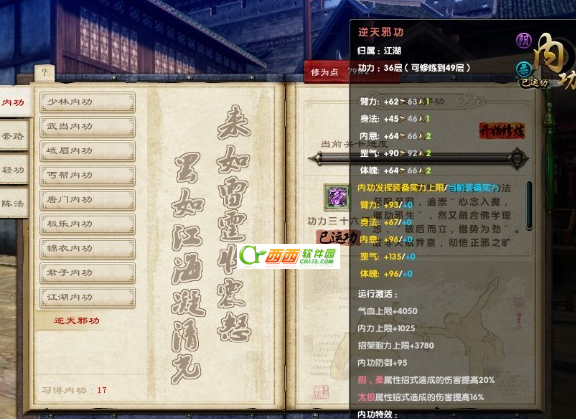 内功除了运功激活的属性,还有收集的加成属性。保证玩家练习的每套内功都是有实际效果的