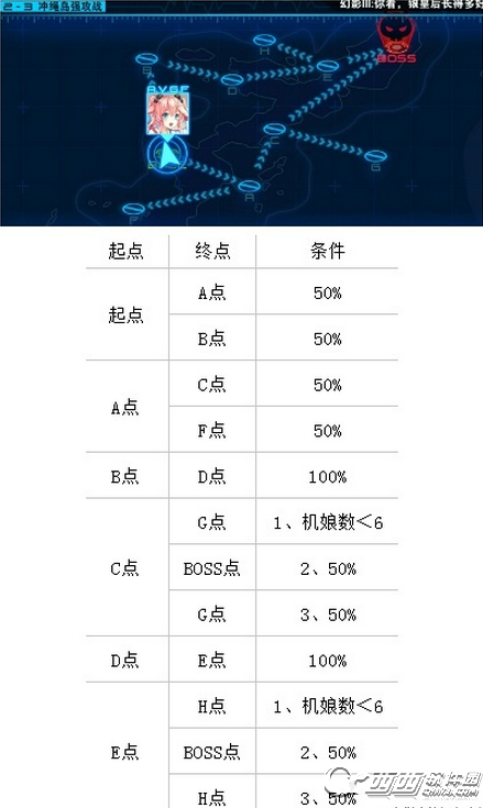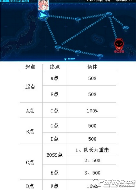 如果有6艘20左右的格斗,那么到B点就会简单不少;没有的话,不要带超过3架重击,这样还有概率在A点直接到BOSS点。