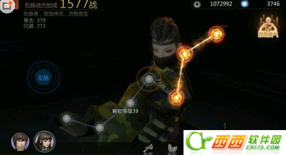 左脉可以为角色提供生命和调息的属性加成;右脉为角色提供的是暴击和闪避的属性加成。