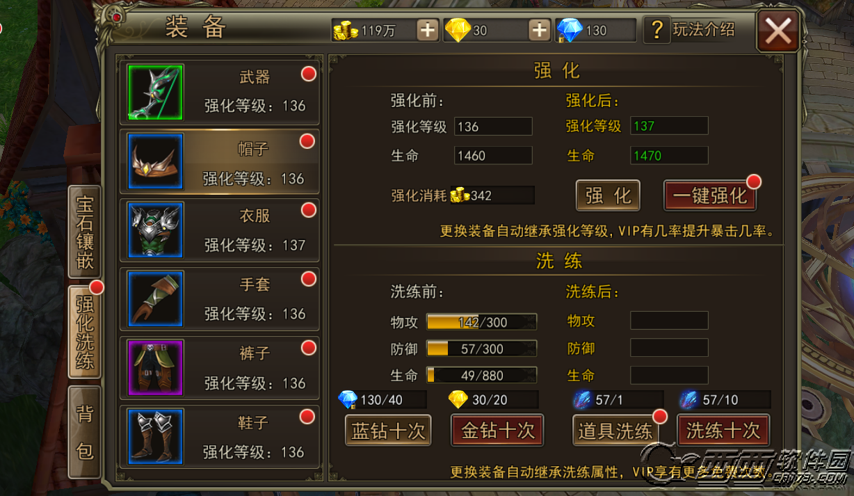 l 洗炼会固定增加装备的 攻击、防御、生命 属性;
