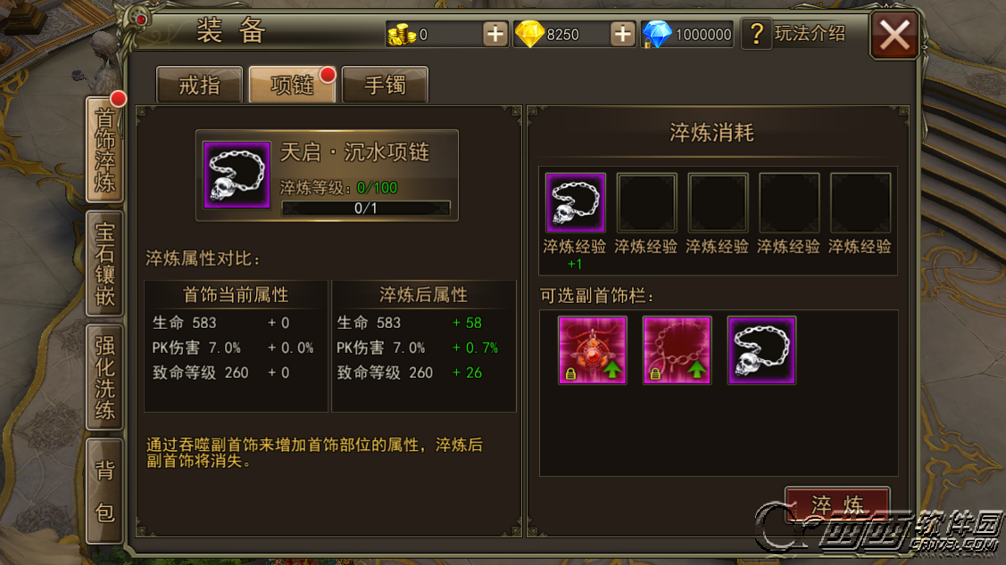 l 默认装备的首饰为主首饰,吞噬背包内的首饰。被吞噬的首饰会消失,且淬炼首饰获得属性加成;