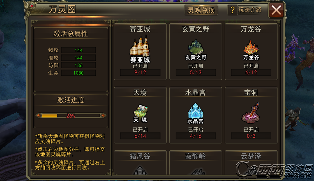l 万灵图:搜集世界上不同怪物的灵魂碎片,达成搜集数量,会为玩家增加对应的属性加成;