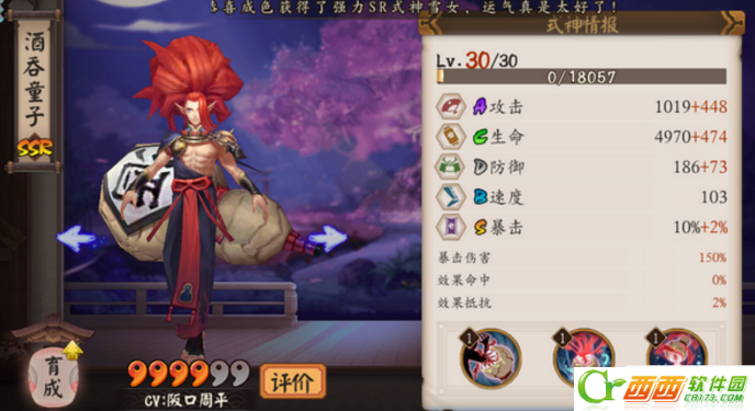 3火 酒吞消耗所有的狂气,每层回复自身最大生命值的12%,强化满后为20%。最多回复80%的血量。因为狂气对酒吞的重要性,并没有多少人回去使用,但作为自保技能,这个技能不可谓不逆天,但是酒吞的脆弱是个极大的问题。