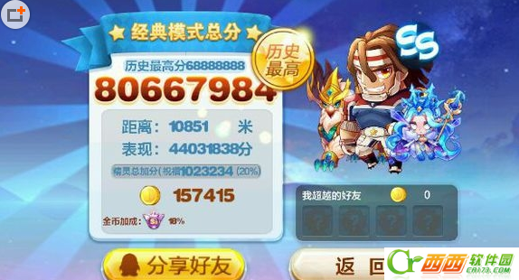 推荐理由:大圣要到挡板的地方开技能爆出飞币,必须在有挡板的地方,钉刺的地方也可以,但一定要是钉刺带,后面8000米左右基本上来一次技能至少300万,人品好点400万。
