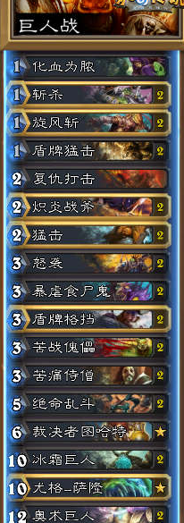 这套卡组并没有太多的随从主要依靠的是4只巨人和法术进行构筑的,因为我们没什么随从,在没有场面的压力的情况下就是转甲,冰霜巨人后期费用会很低。