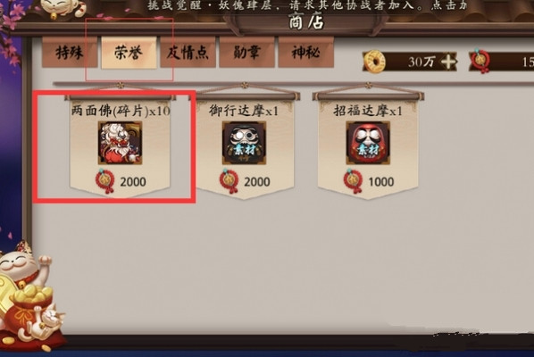 如果段位低,一周的上限是2000(赢一局100左右,输一局是50左右,多输几次也可以拿到荣誉点),2000可以换10个碎片,所以算下来第三周就可以兑换到完整的两面佛~!