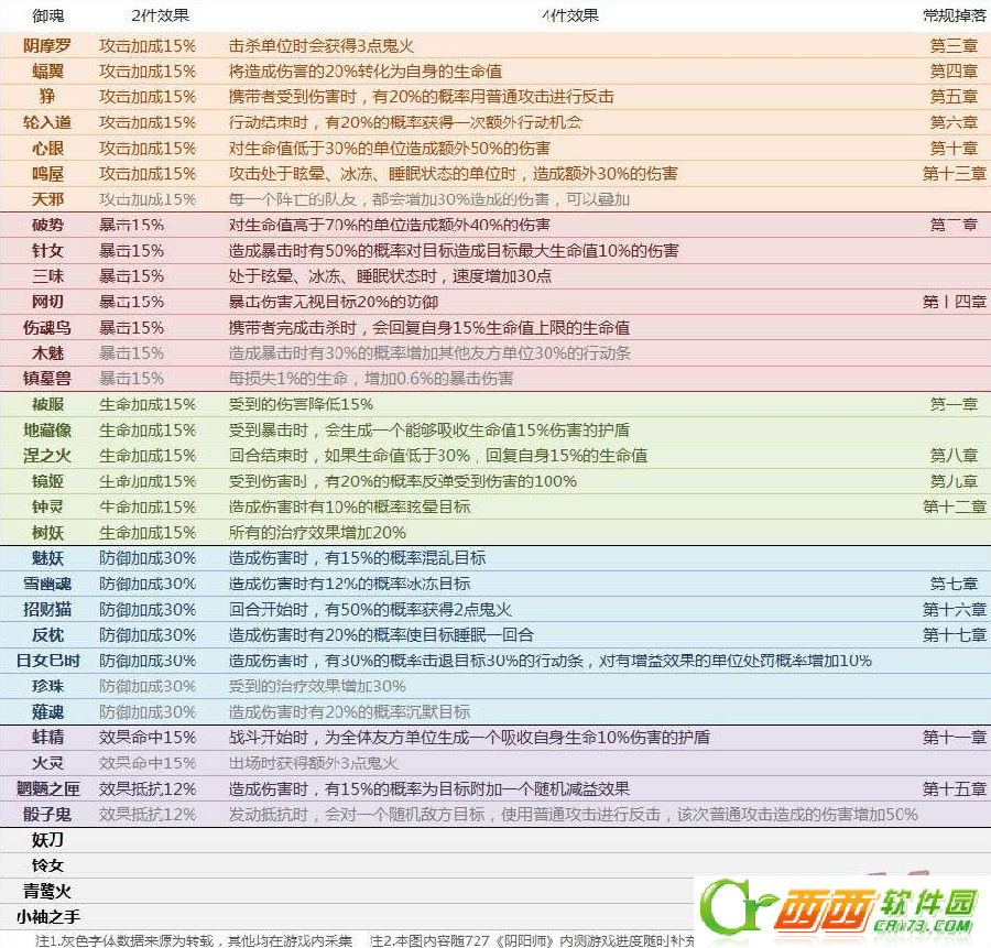 | 御魂 | 2件效果 | 4件效果 | 掉落地点 | 御魂 |