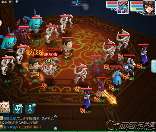 6.继续打,逐个集火击杀小怪,最后剩下boss,这时候就要注意了,大家一起群boss,群到boss少于一半血时,他就会招怪,两个肥肥,两个魔骨,奶妈加血被boss压制,可以说基本加不了血,这时候就行血拼了,五灵封印小怪,奶妈开大招大招,(所以奶妈之前要适当保留大招)