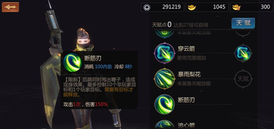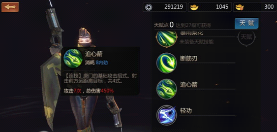 2.断筋刃,唐门的控制技能,施法距离稍断,用技能的时候会后退。