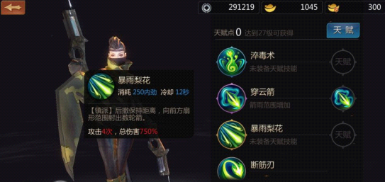 上面就是唐门的基本技能,在游戏中等级达到一定程度,会获得天赋点,淬毒术,暴雨梨花,穿云箭,增加特殊效果。下面谈一下这些技能。